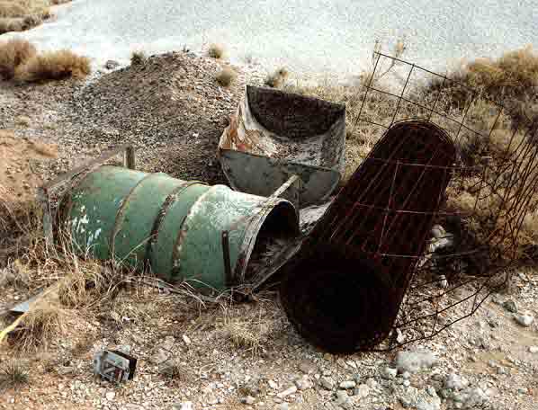 Pumice Drum I used to be an oildrum, now I am used to mix up cement and pumice for building a house in Galisteo, New Mexico.
