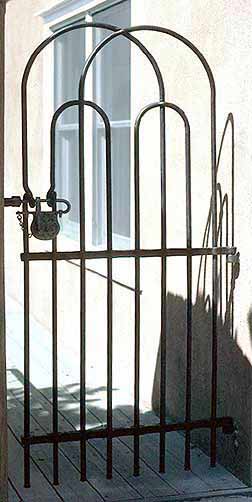 Little Gate Little gate for walkway, forged with traditional joinery and contemporary design. All joints are punched, drifted with the crosspiece fitted through and secured with hardened steel pins. No welding. Lock By Manuel Guerra.