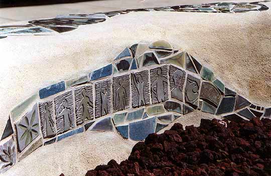 Las Vegas Fountain Detail of one of the benches. High-fire (frost-proof) handmade tile, set into the stuccoed bench.
